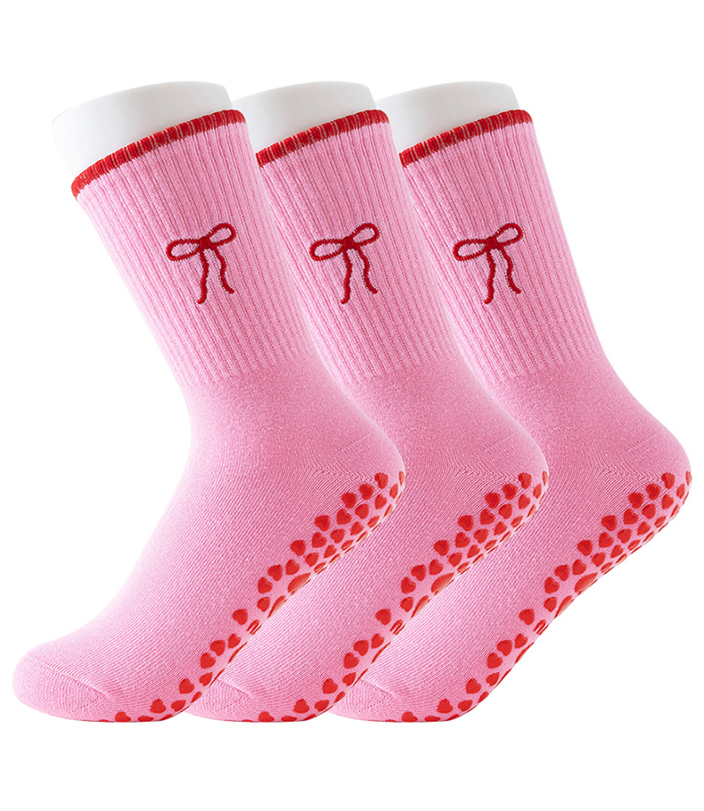 Womens Mid-calf Cotton Yoga Socks With Breathable Embroidery