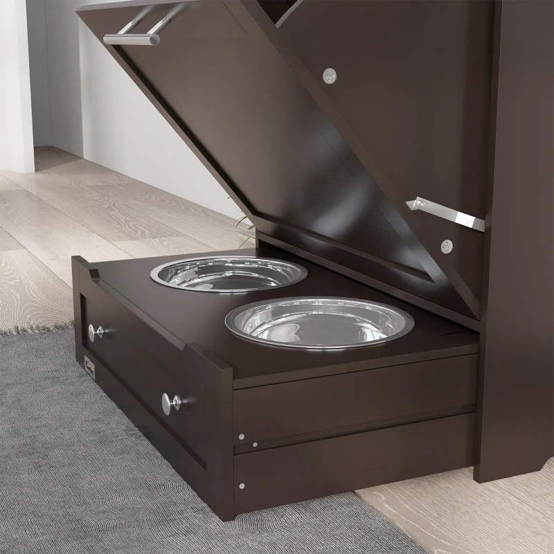 - - Dog Feeding Station with Storage: When it's time for your little buddy to eat, pull out the bottom drawer to reveal a food and water bowl. When feeding time is over, simply push it back in