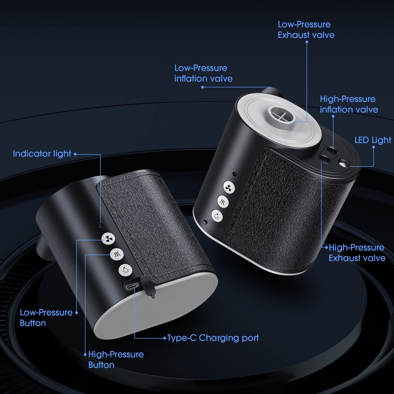 1. Quick inflation (low pressure): Press and hold the button for 2 seconds (quick inflation and extraction button) to start the low-pressure pump, and then